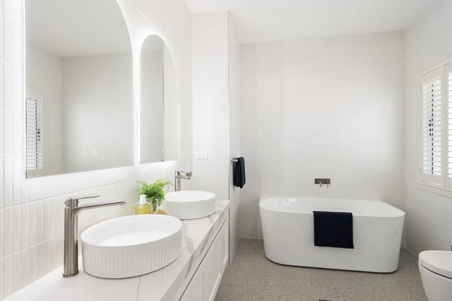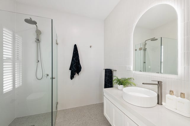 Accommodations are spread across both levels offering two primary bedroom options both with ensuite and walk in robe - one on the lower level and another upstairs. On the upper level is two further bedrooms serviced by the main bathroom with feature soaker tub and dual vanity, ensuring this home caters to a variety of lifestyles, with flexibility for growing families, multi-generational living, or those seeking an adaptable forever home.