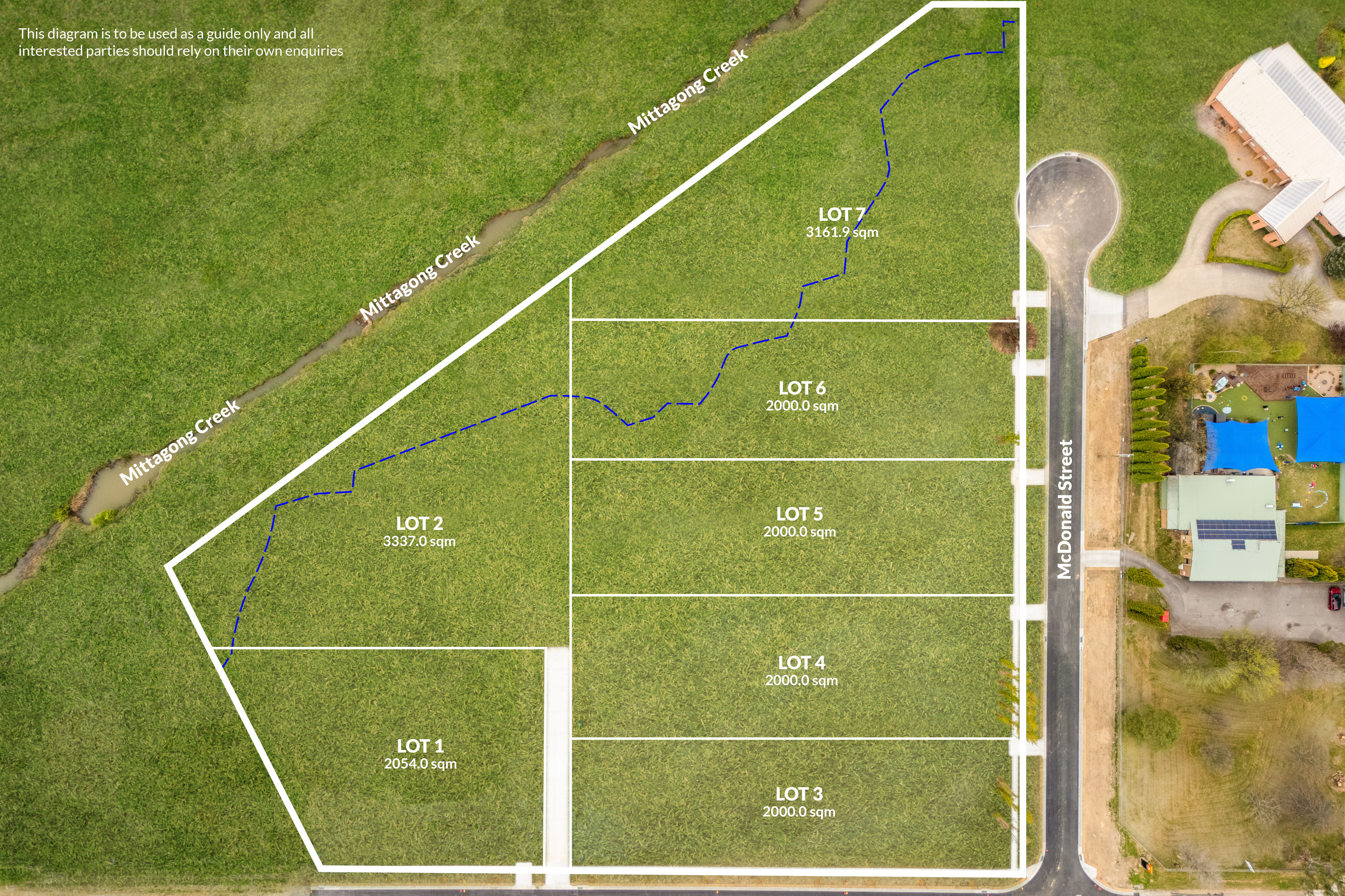 - Zoned R2 Low Density Residential - Access to lots 1 & 2 via Bowral Street - Access to lots 3,4,5,6 & 7 via McDonald Street - Civil engineering completed - Fully serviced - Including town water, sewer, gas, electricity, phone/NBN connected to each parcel - Survey pegs, driveway access and post & rail fencing clearly define each allotment