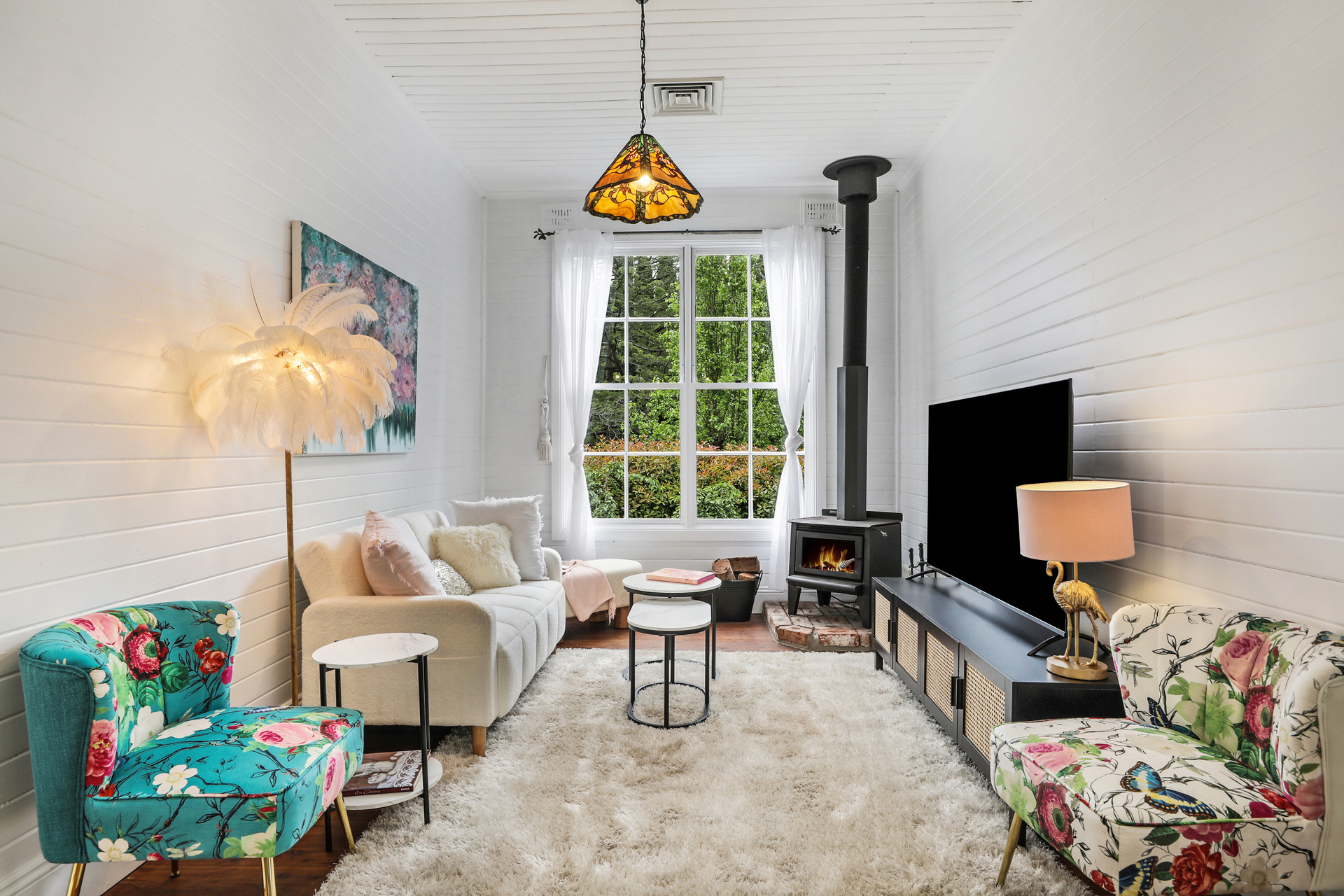 - Cottage home with a stained-glass front door and exuding quaint charm and offering views overlooking Mount Gibraltar - Open kitchen living design features a skylight, enhancing natural light and fostering effortless interaction - Three spacious and comfortable bedrooms, each exuding warmth and tranquility - One bathroom with a charming claw-foot bath included, providing luxurious comfort and vintage elegance - Beautiful, hard timber floorboards throughout create a seamless, elegant aesthetic - Ducted heating and cooling, complemented by wood and gas fireplaces, ensure year-round comfort and coziness - Outdoor patio area with stunning garden views, ideal for peaceful retreats and outdoor entertaining - Timber design on internal walls and high ceilings adds rustic charm and a sense of spaciousness - Additional art studio for creative endeavors and personal projects, perfect for nurturing artistic pursuits - Located in Old Bowral near Cherry Tree Walk, offering convenience and lifestyle charm in a picturesque setting