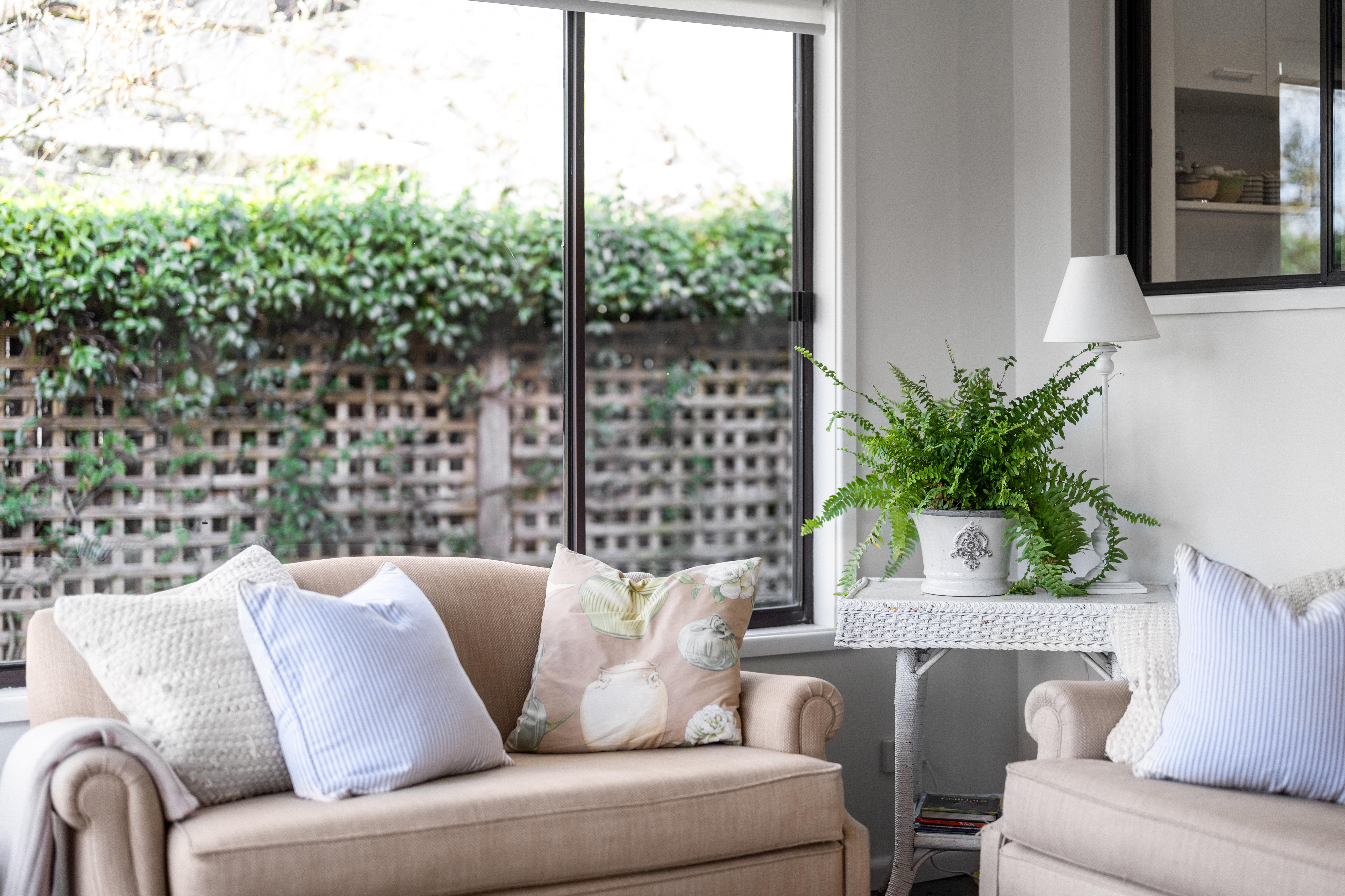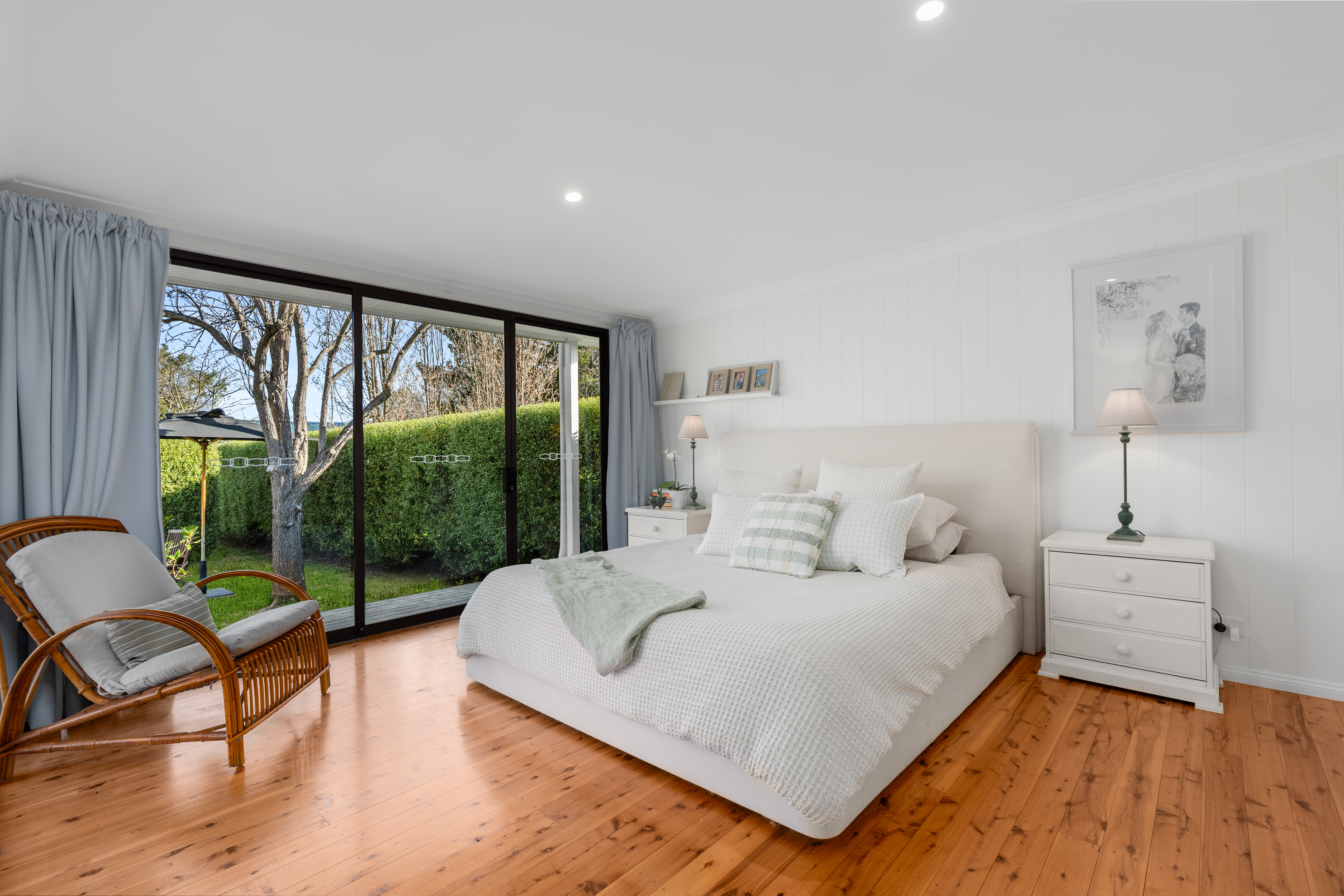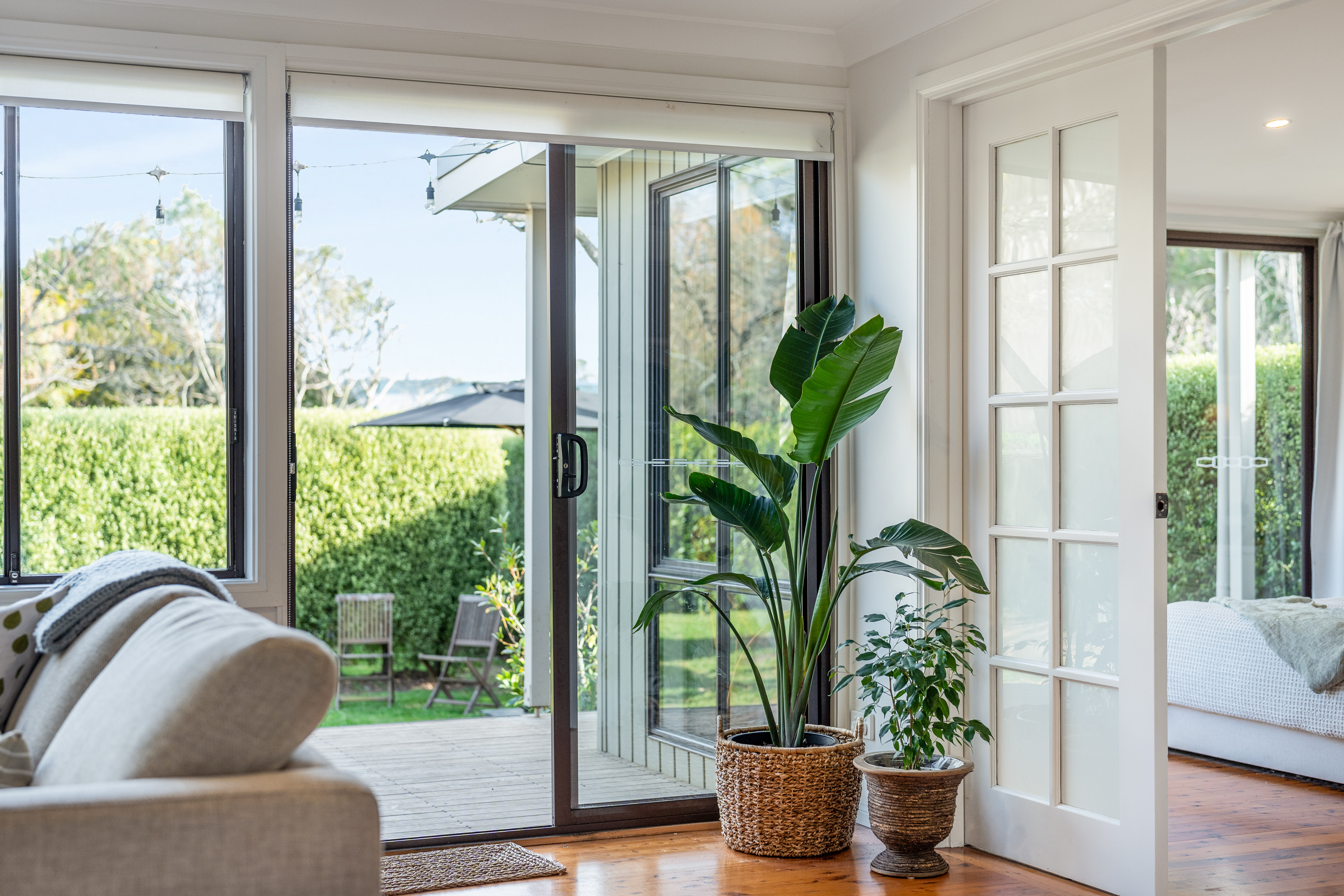 Tranquil Bedrooms: The master bedroom serves as a peaceful retreat, complete with built-in wardrobes, large windows, and direct access to a rear deck that extends into the garden. A concealed en-suite adds an element of luxury, while the sun-soaked, north-facing second bedroom offers calming garden views.