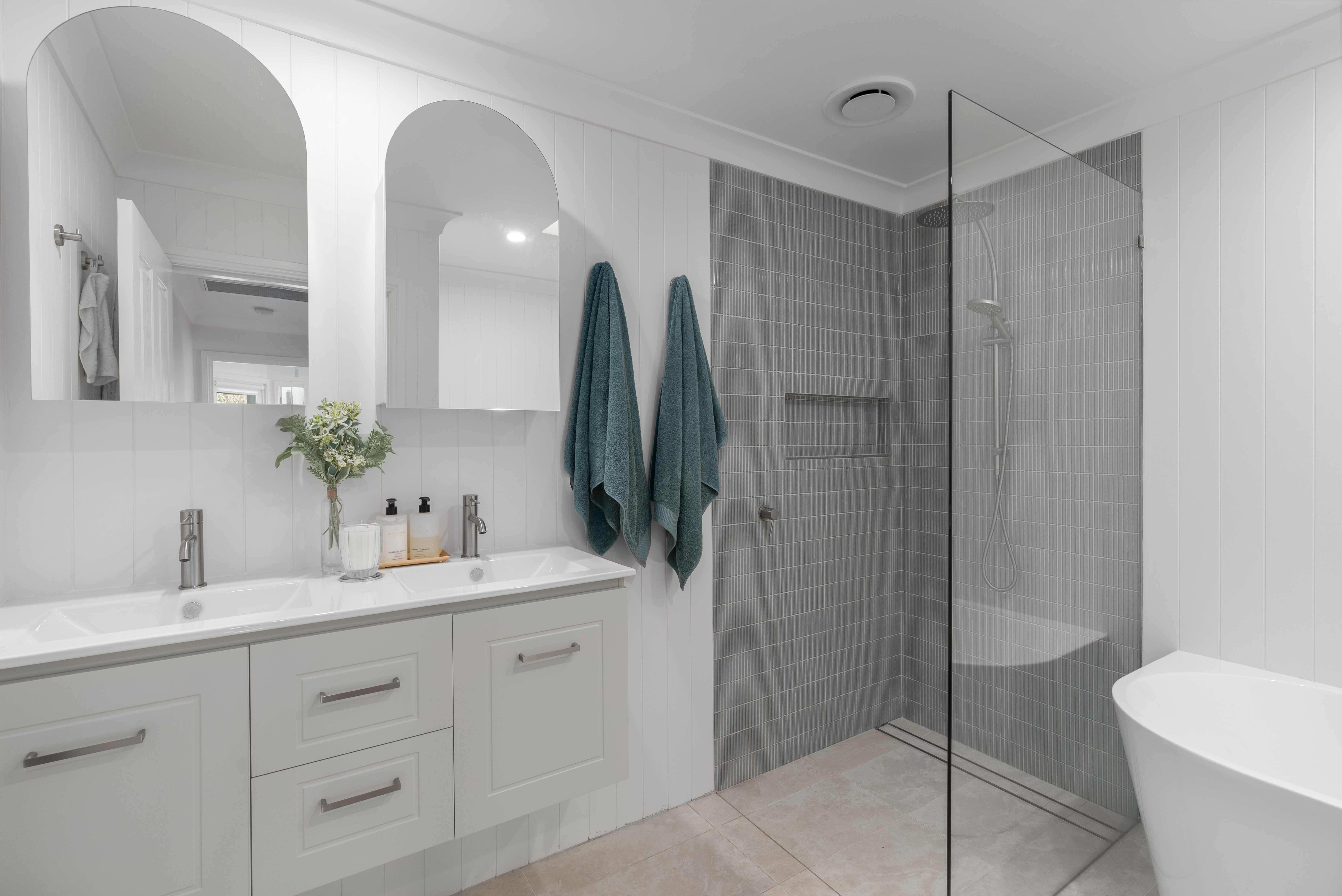 Recently Renovated Family Bathroom: The modern family bathroom has been tastefully updated with high-quality finishes, complementing the home's overall design while offering enhanced comfort and style.