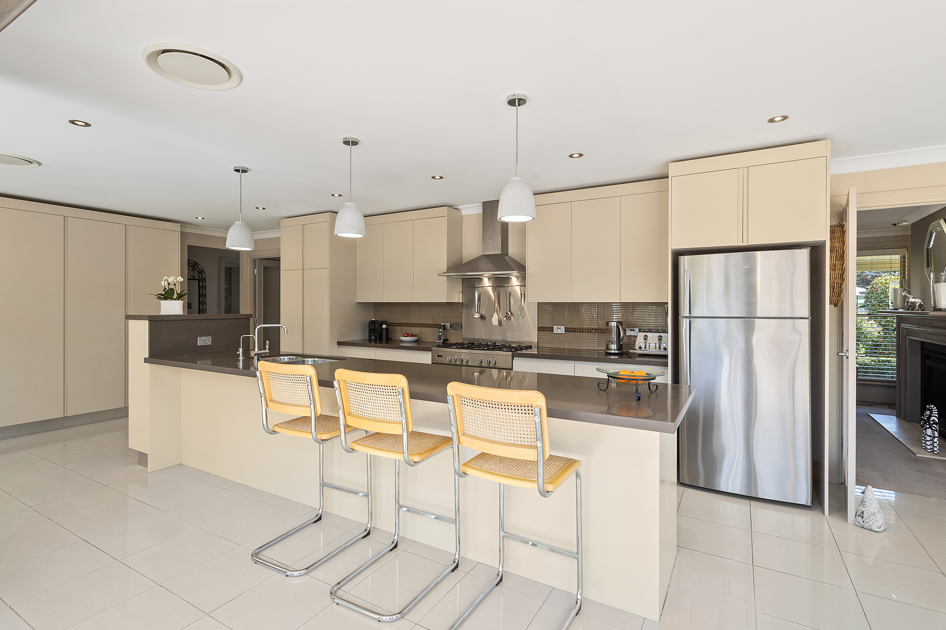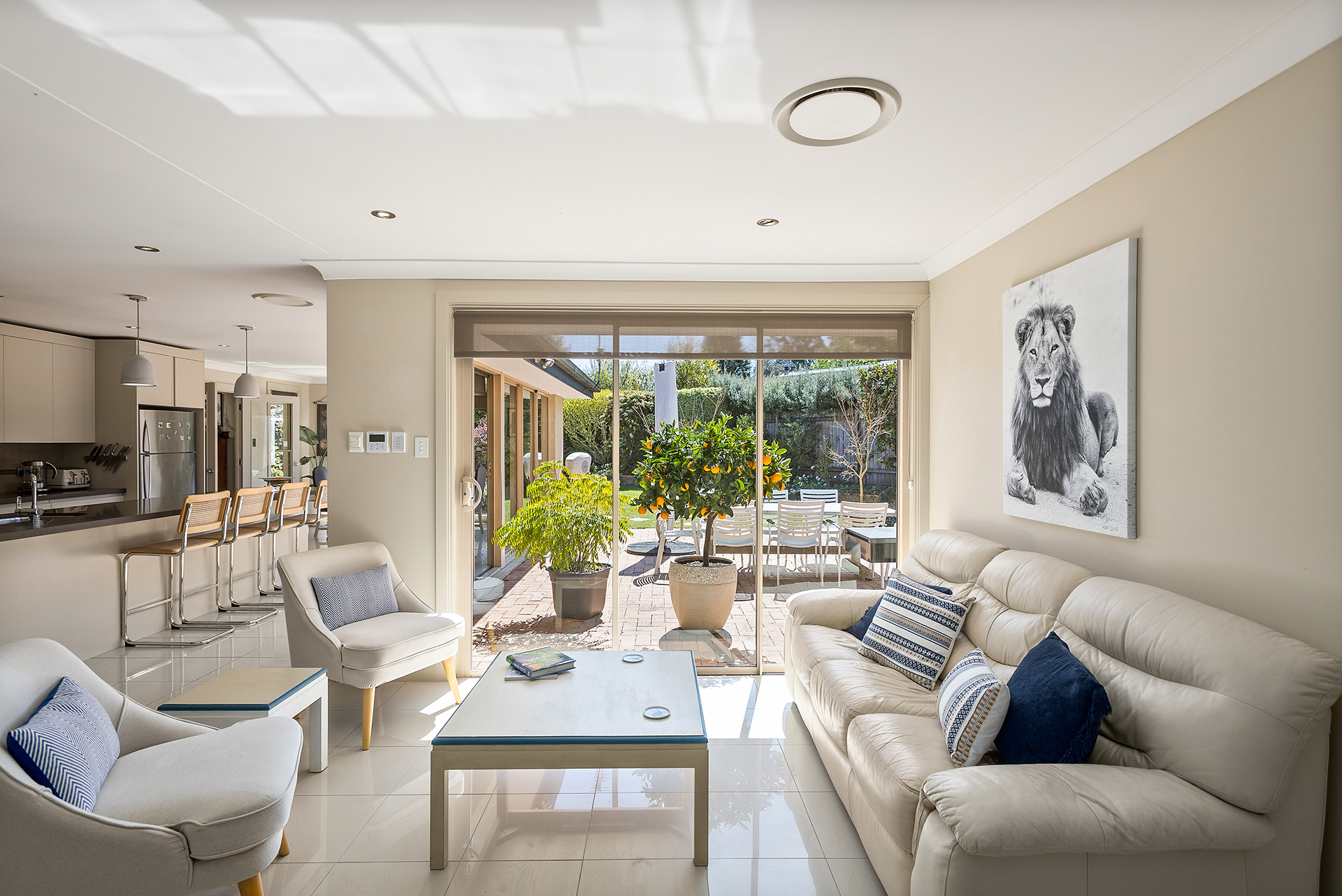 A wonderful open plan kitchen and dining room flows through the glass stacker doors to the paved alfresco terrace *