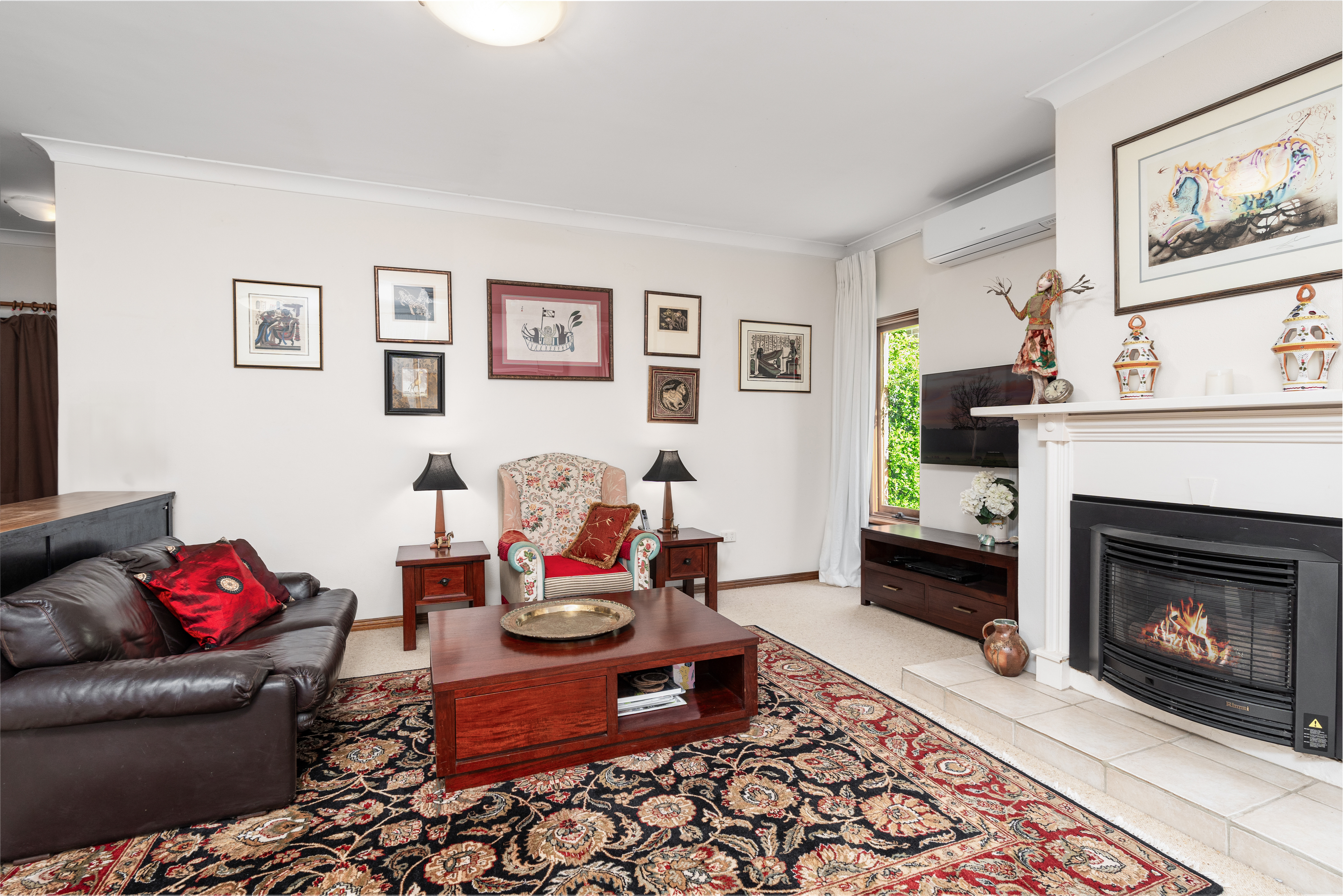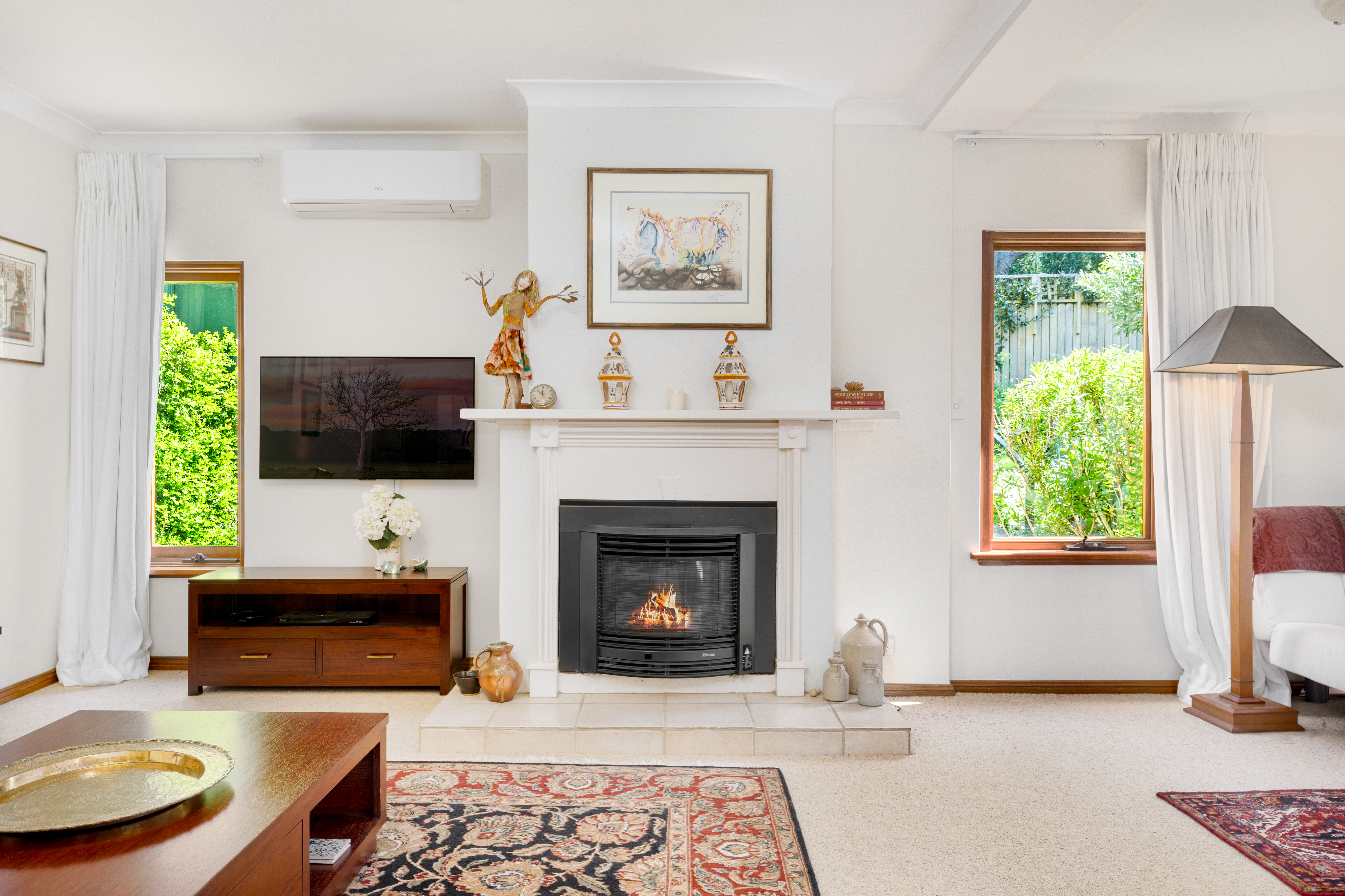 Step inside to discover a thoughtfully designed interior that boasts a harmonious blend of comfort and style. The inviting living room features a cosy fireplace, creating a warm ambiance for those chilly evenings. Natural light from the north floods the open-plan dining, living and both bedrooms.