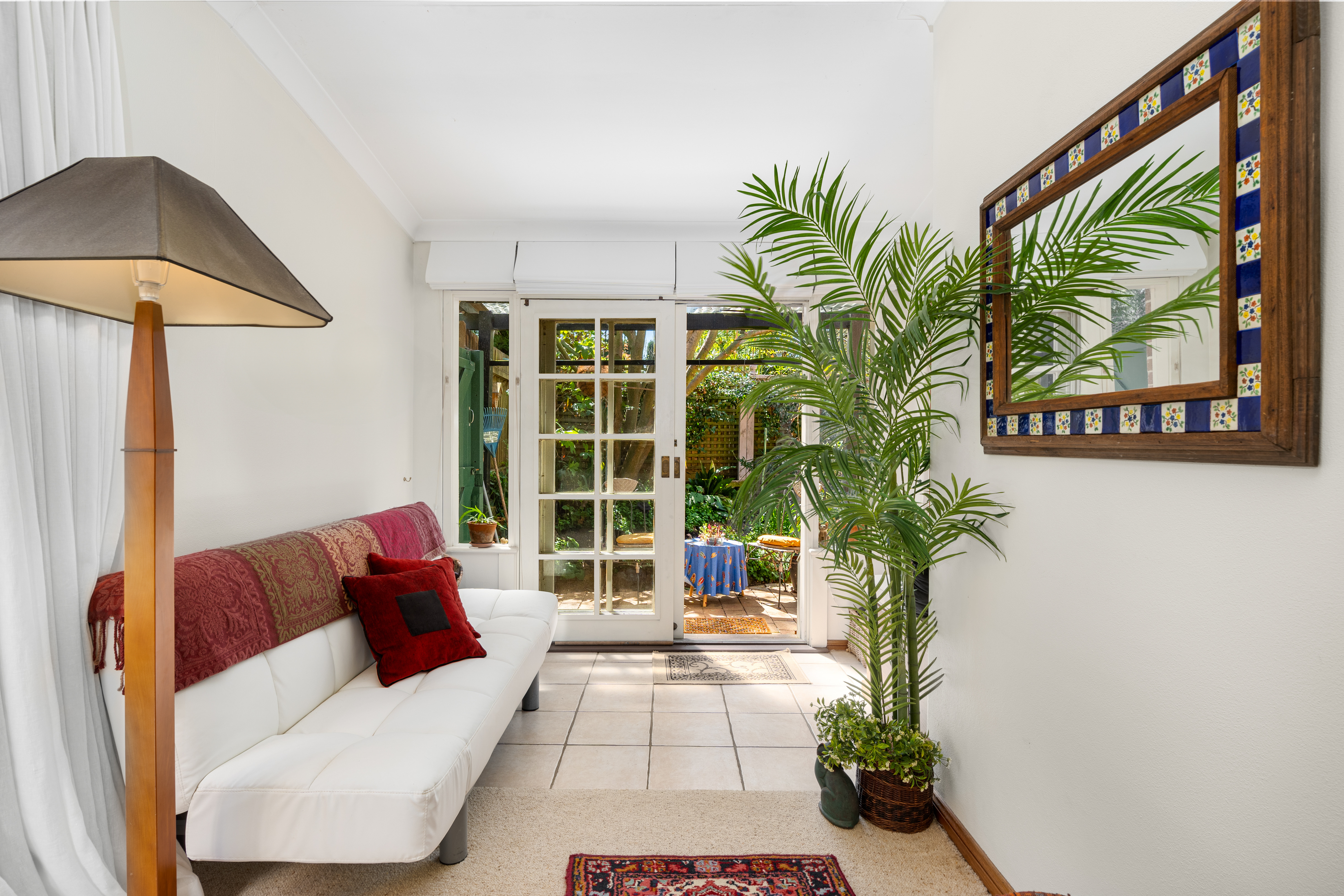 As you approach this charming ground-floor villa, you'll be greeted by beautifully landscaped gardens adorned with vibrant colours and lush greenery. The spacious north facing courtyard features an established garden and a flagstone pathway, perfect for enjoying sunny afternoons or hosting gatherings with friends and family.